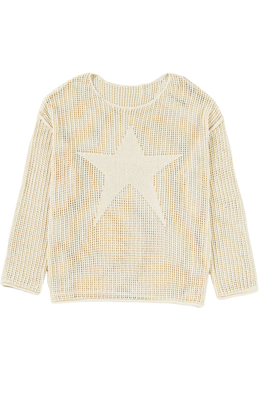 Parchment Hollow Out Knit Star Pattern Plus Size Sweater