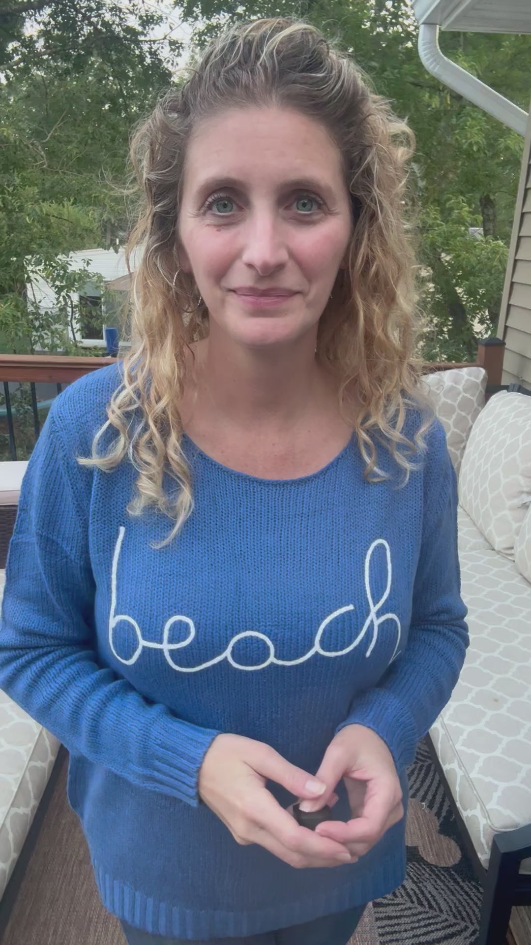Long Sleeve Knit Sweater with cursive lettering. Perfect for the beach lover in your life!