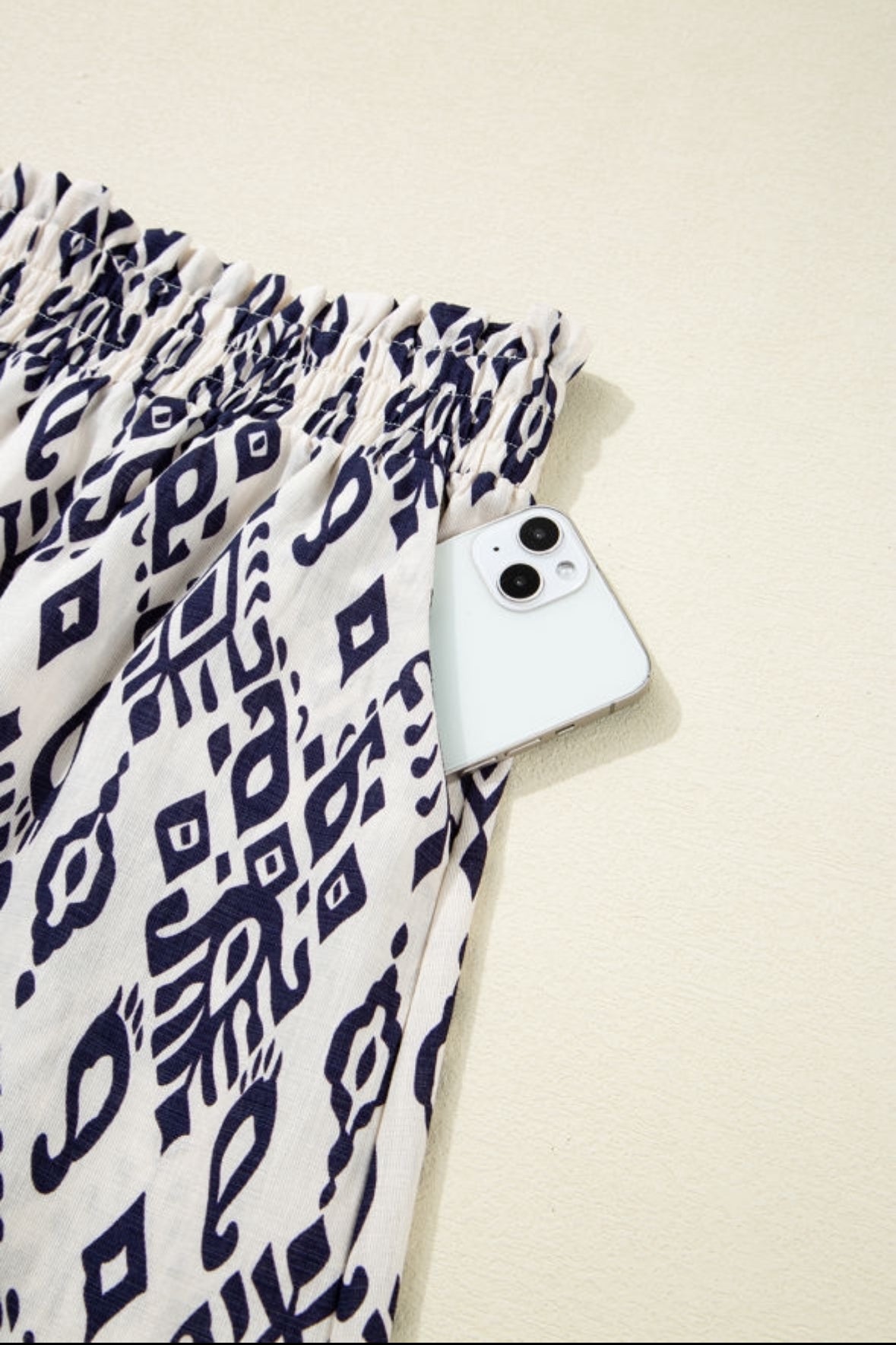 Embrace the essence of bohemian flair with our wide leg pants featuring a smocked waist for a flattering fit making it perfect for standing out at summer festivals or beach outings.