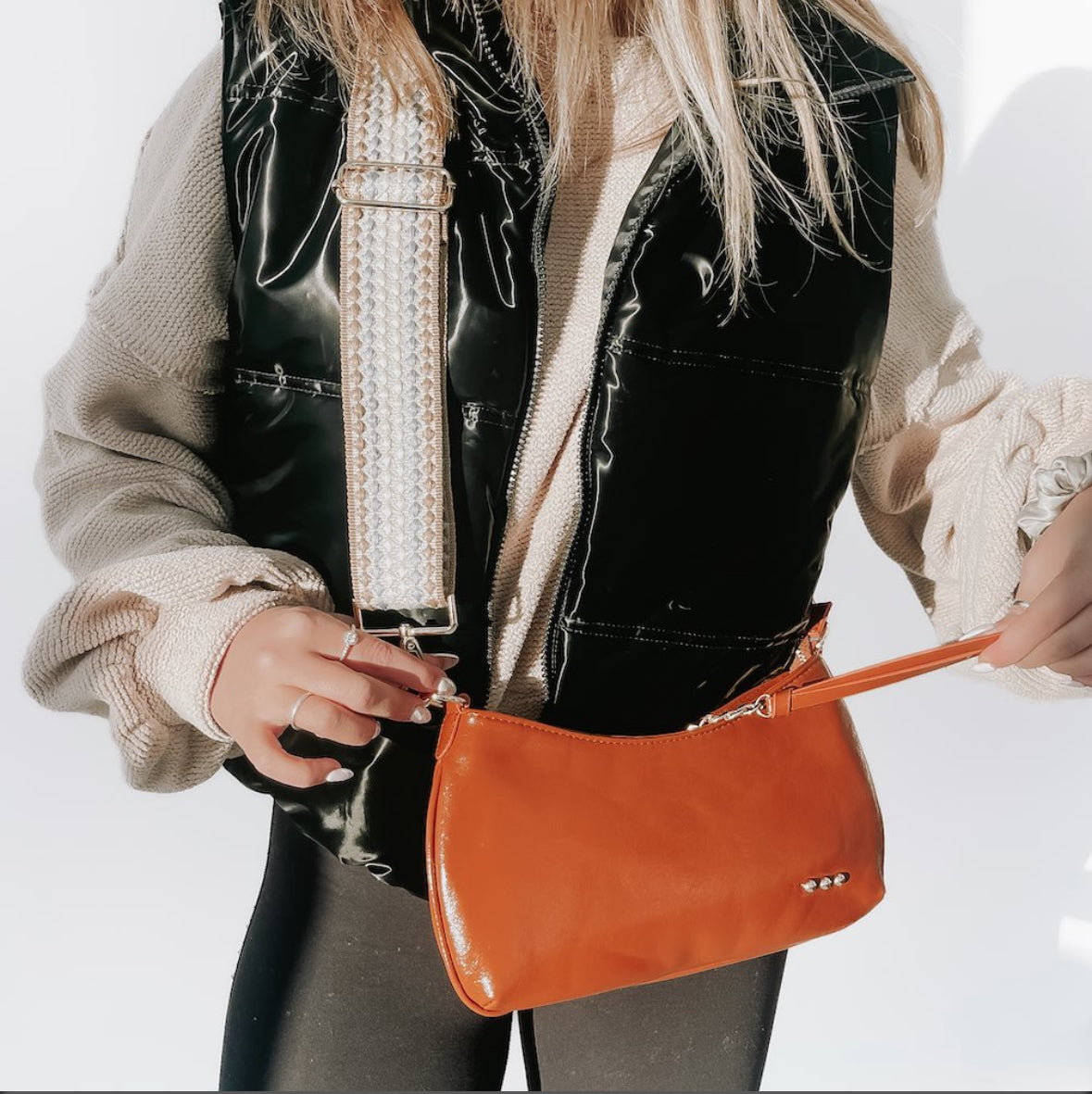 Comes with a playful tassel attached to the zipper closure and two trendy straps: one braided shoulder strap and another neutral patterned crossbody canvas strap. Carry all your essentials in style!