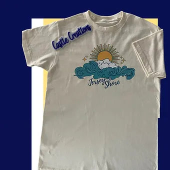 Custom designed Jersey Shore t-shirt, unisex sizing.