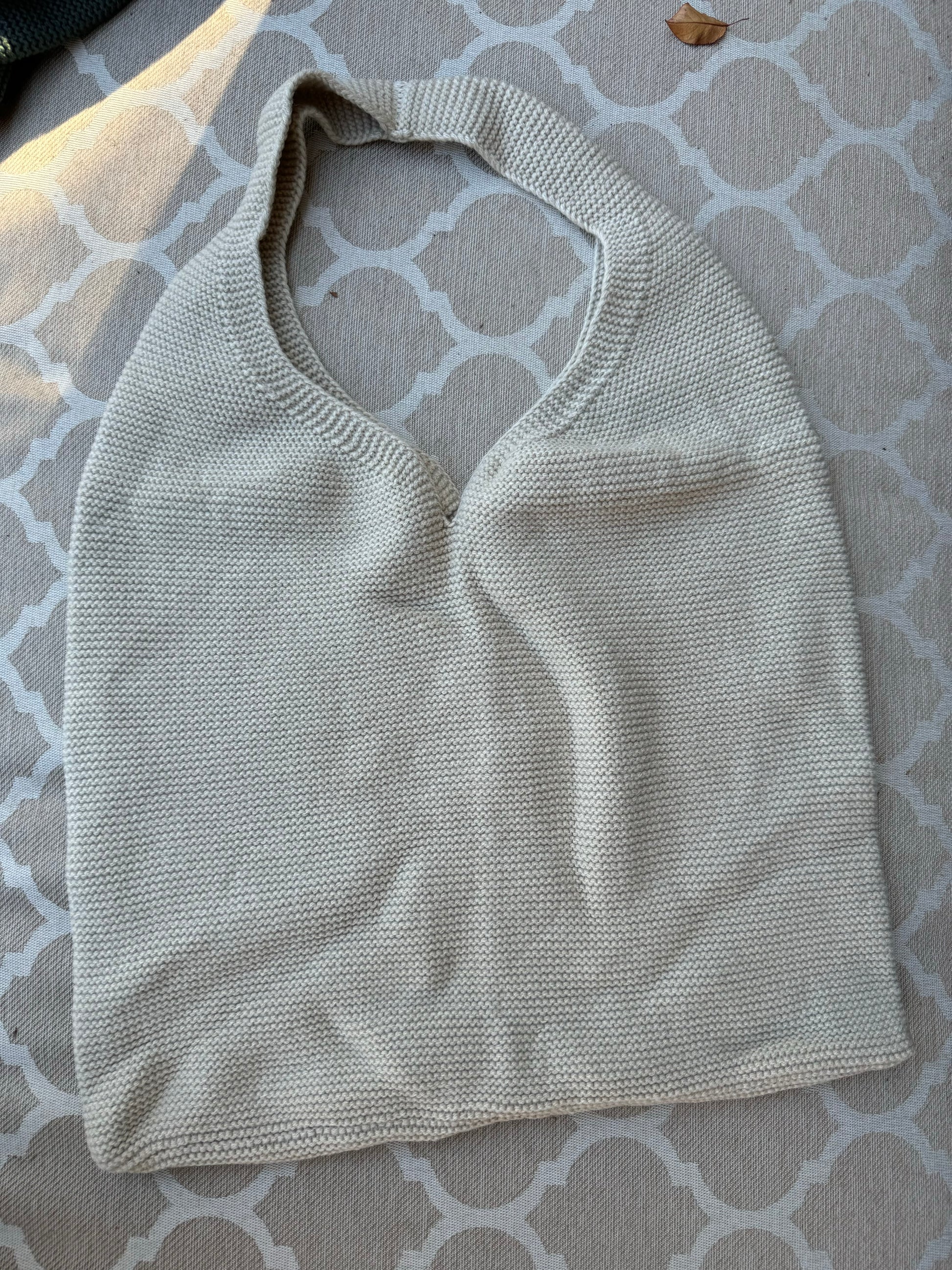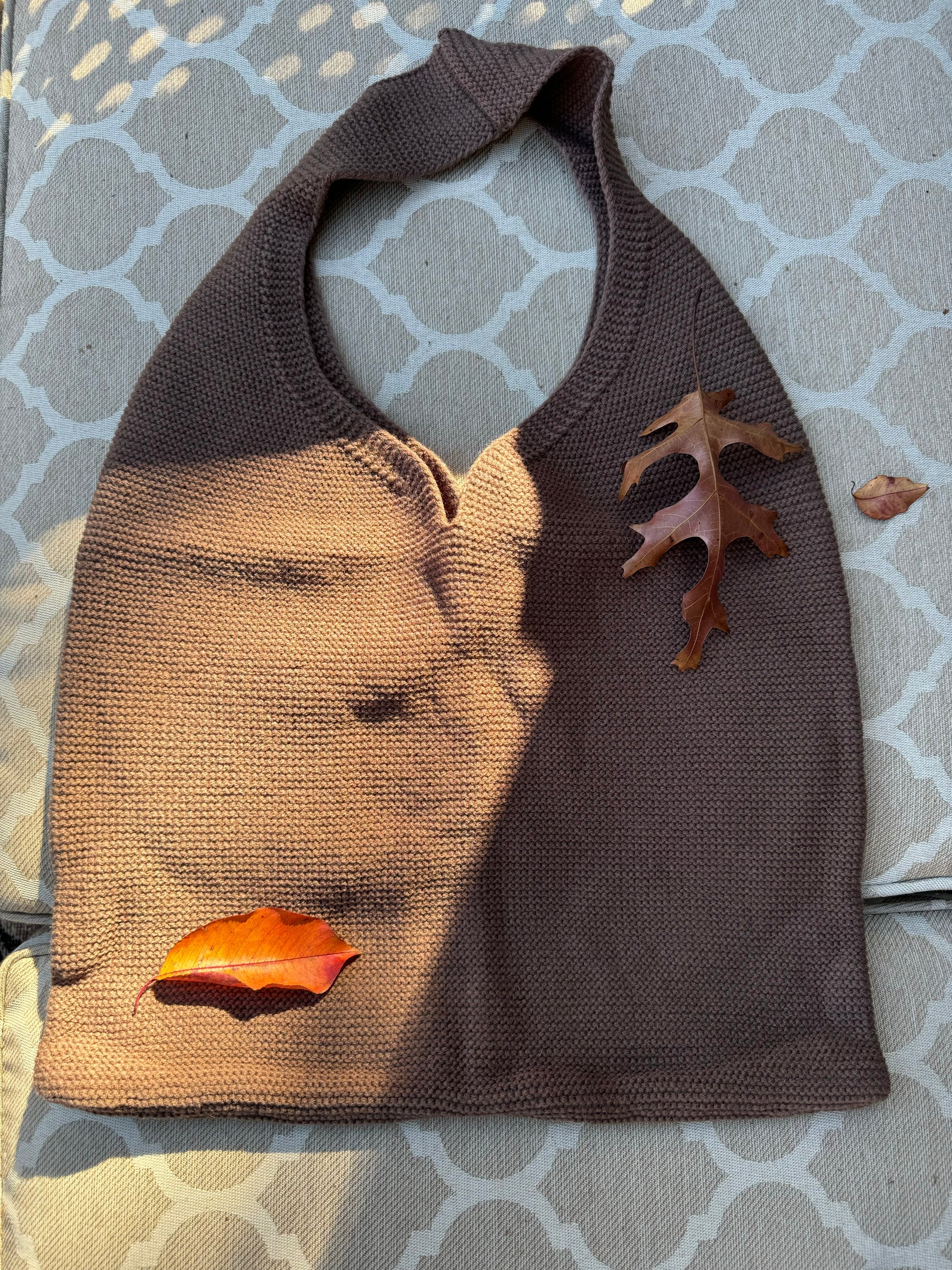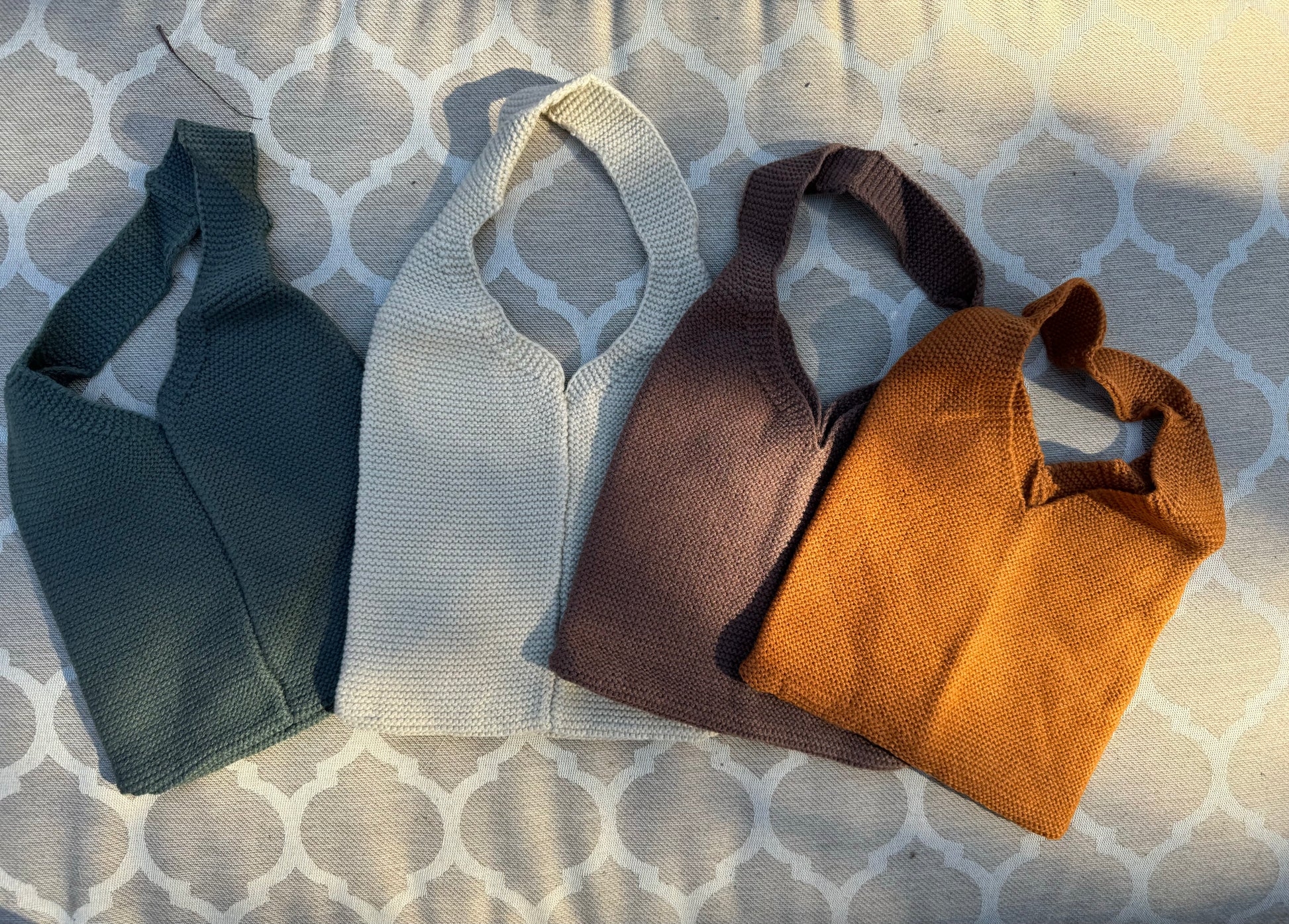 Knit bags approximately 14” x 12” in size. No inner pockets.