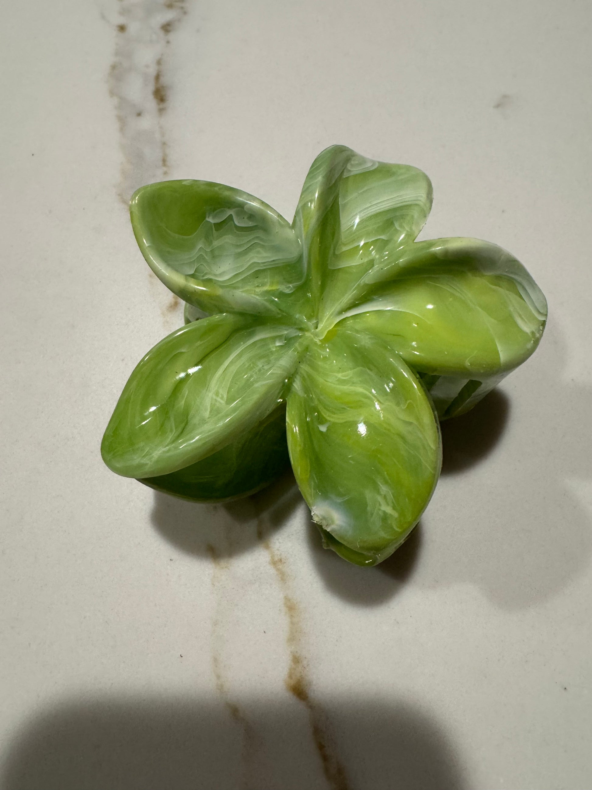 Colorful Hawaiian plumeria claw clip with marbled effect. Clips are approximately 3”
