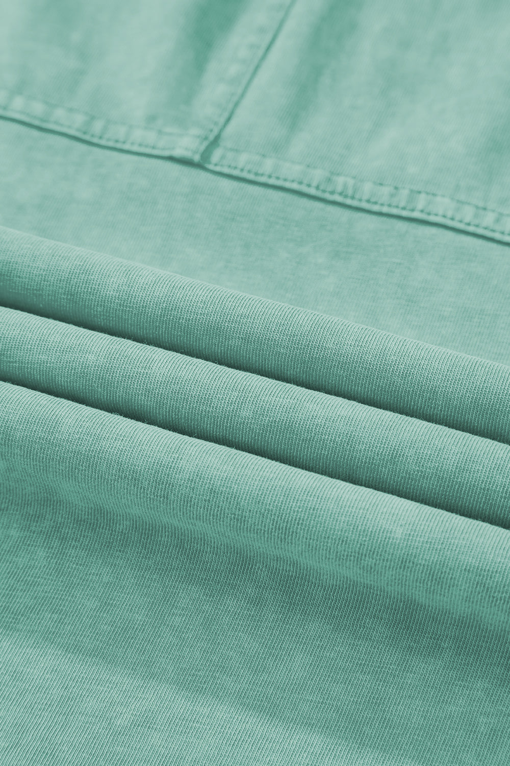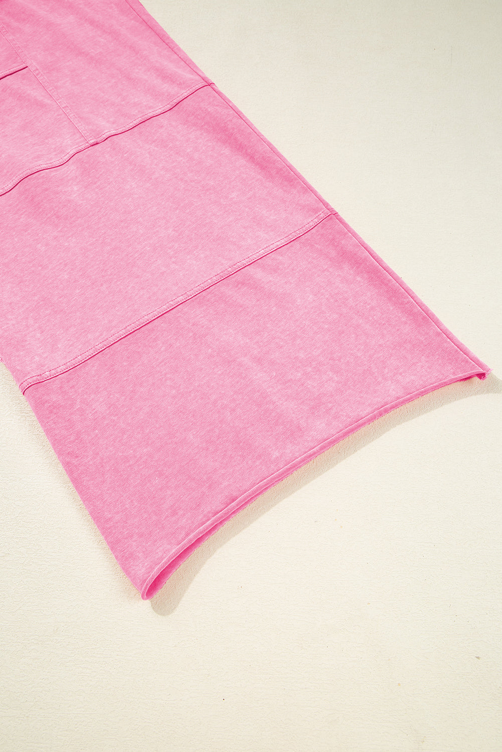 Smoke Gray Mineral Wash Exposed Seam Drawstring Elastic Waistband Wide Leg Cargo Pants