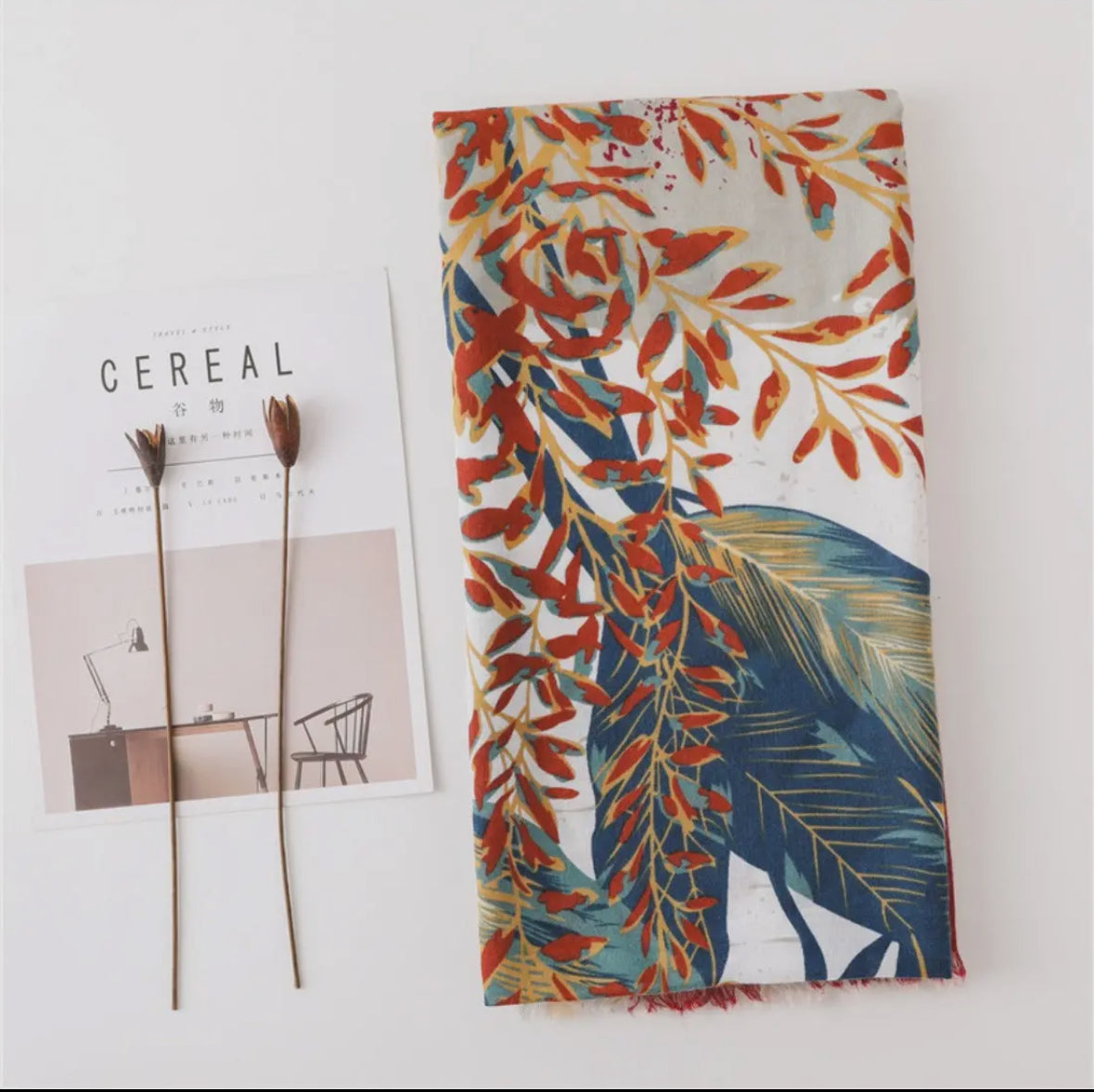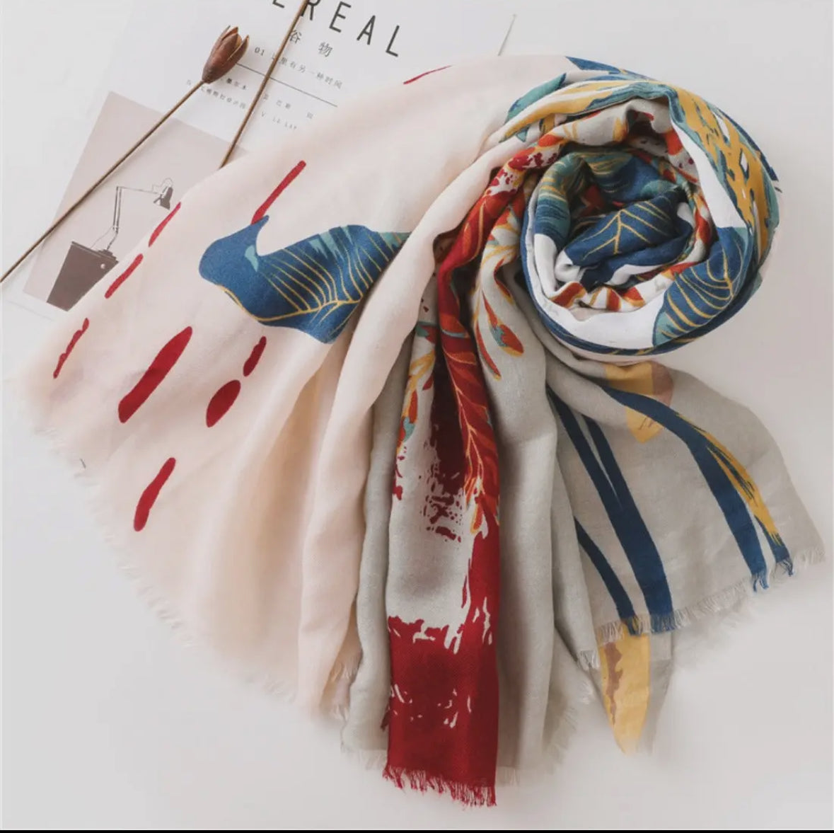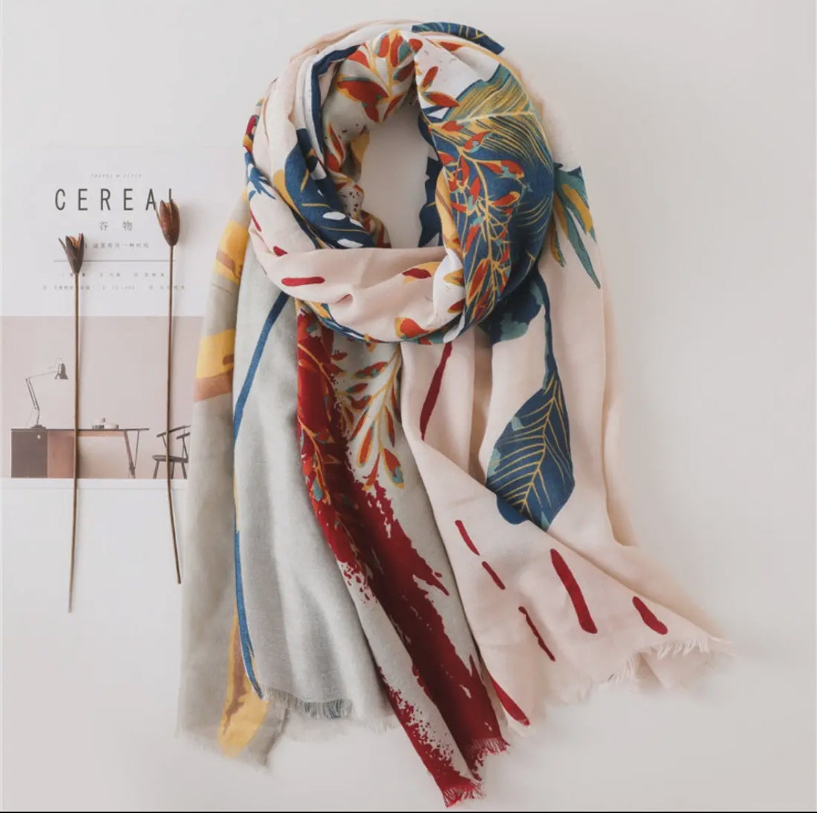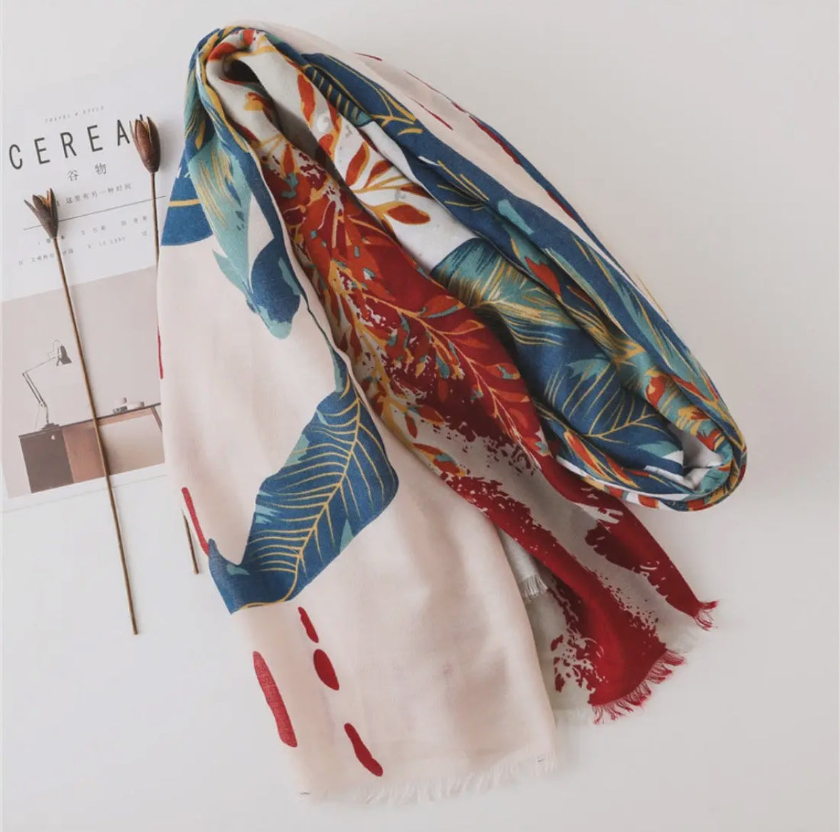 Featuring a beautiful blend of botanical motifs, this light & breezy scarf is perfect for adding color to your outfit